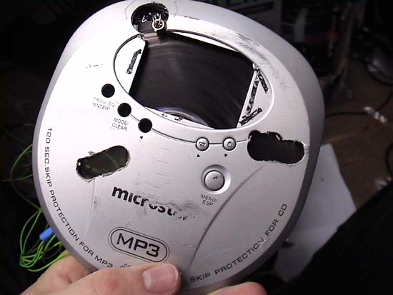 As you can see some holes were “drilled” through the CD player to allow your eyes to watch through: