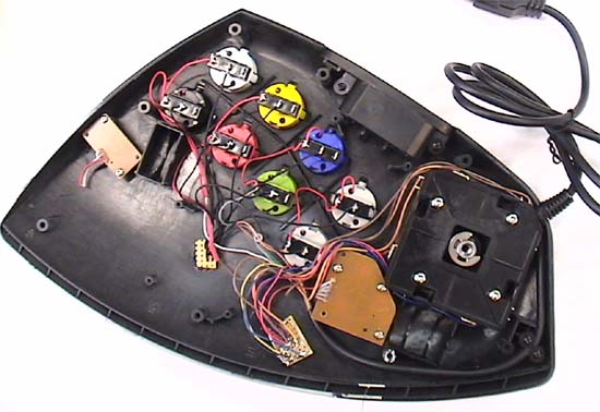 Two small prototype PCBs containing the necessary Resistors (see Gamepad shematic for details) were hot glued on the Controller’s casing and the cables attached to the high precision micro switches: